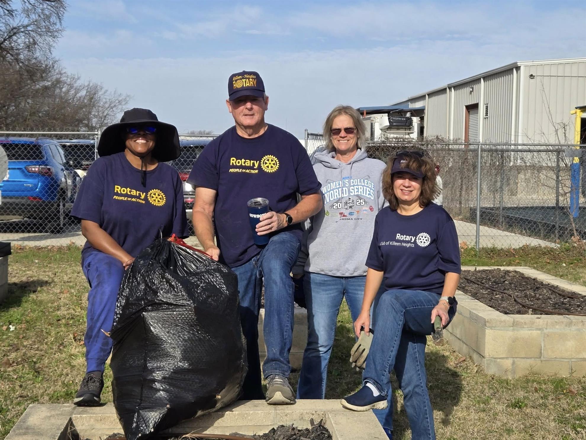 Members of the Killeen Heights Rotary Club are rolling up their sleeves and digging into service—literally. Each month, on the second Wednesday, Rotarians gather at the Killeen Food Care Center to tend the community garden, helping prepare it for the upcoming spring planting season.